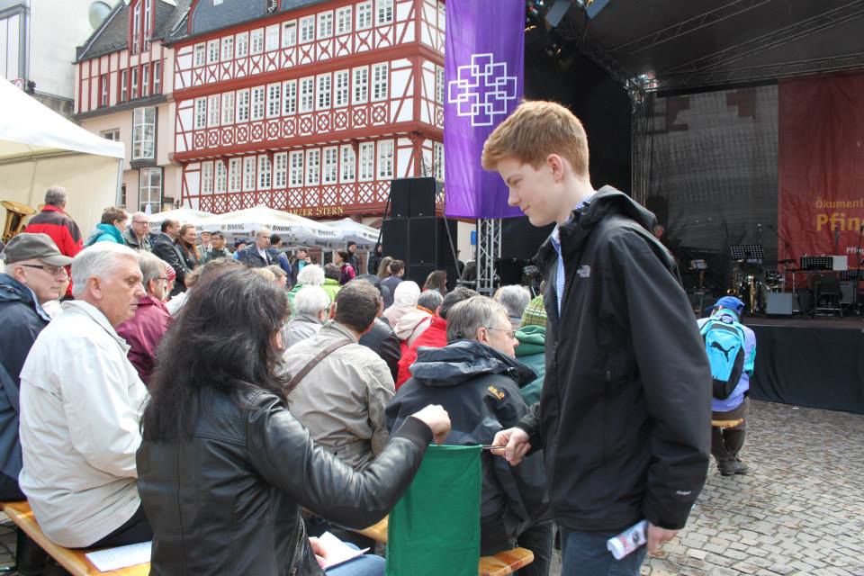 Der evangelische Stadtdekan predigte zum Auftakt des Ökumenischen Pfingstfestes, das alljährlich im Herzen der Stadt mit verschiedenen christlichen Gemeinden, auch unterschiedlicher Sprachen und Herkunft, begangen wird. Rund 800 Gottesdienstbesucherinnen und -besucher folgten bei sonnigem Wetter der Einladung der Evangelischen Kirche Frankfurt am Main auf den Römerberg.